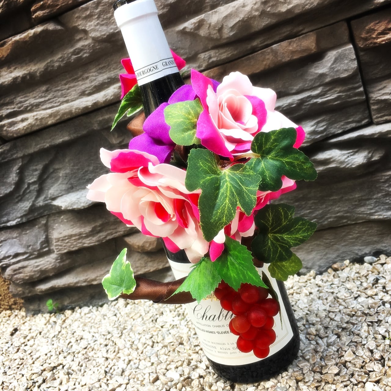 薔薇とぶどうとアイビーのボトルホルダー。